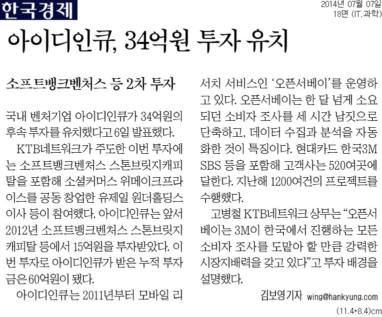 KTB네트워크가 앞장선 Series B 투자건이 보도된 기사